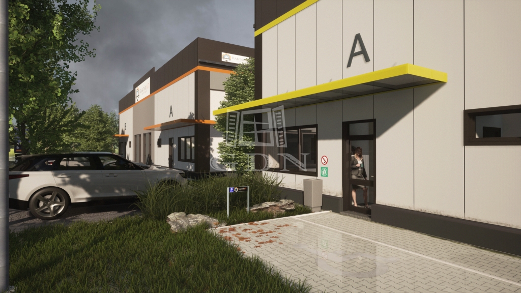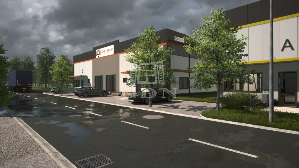 A csarnokokhoz tartozik a csarnok előtt lévő terület, illetve minden csarnokhoz jár plusz parkolóhely is.