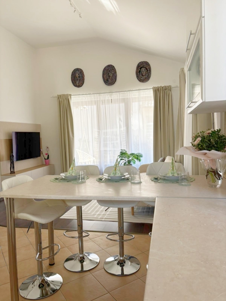 A körülbelül 110 m2 alapterületű ház néhány héttel ezelőtt teljes körű felújításon esett át. Ennek során megtörtént a teljes belső festés, a fürdőszobák új szaniterekkel, csaptelepekkel és új mosógéppel lettek felszerelve. A konyhába új hűtőszekrény és mosogatógép került, a többi helyiséget pedig modern, magas minőségű bútorokkal rendezték be.