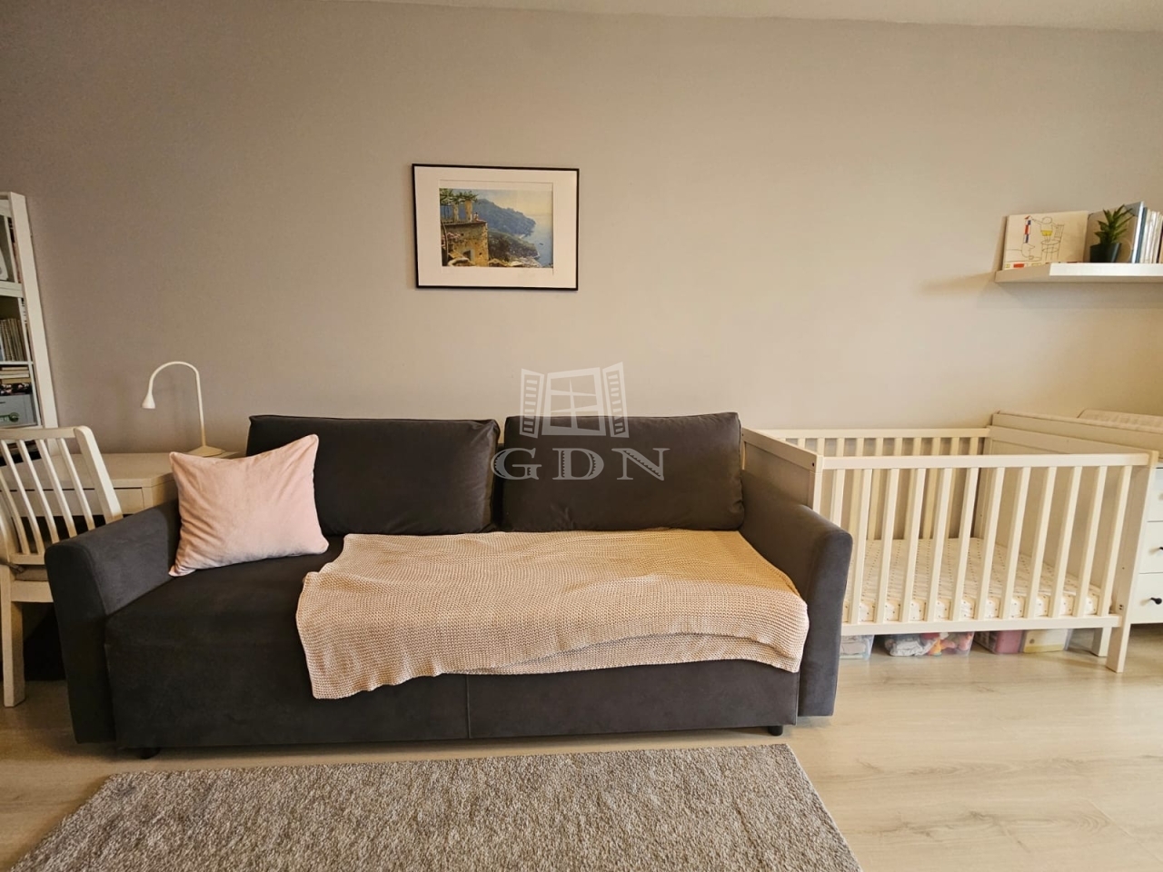 A lakás az 5. emeleten található, keleti tájolásának köszönhetően világos, ugyanakkor kifejezetten csendes, mivel nem a forgalmas Váci út felé néz.
