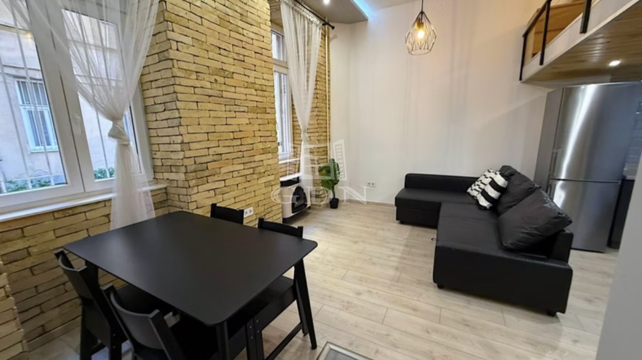 A teljes alapterület 26 m2, plusz 10 m2 galéria, tágas konyha és teljesen új fürdőszoba.