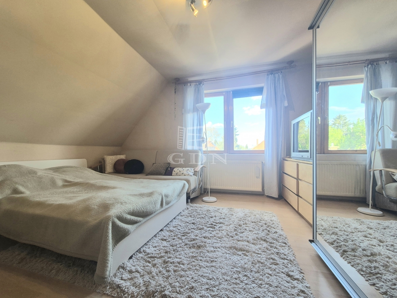 A jól kialakított, kellő belmagassággal rendelkező tetőtérben 4 különnyíló hálószoba, egy sarokkádas fürdőszoba, külön wc-bidével került kialakításra.