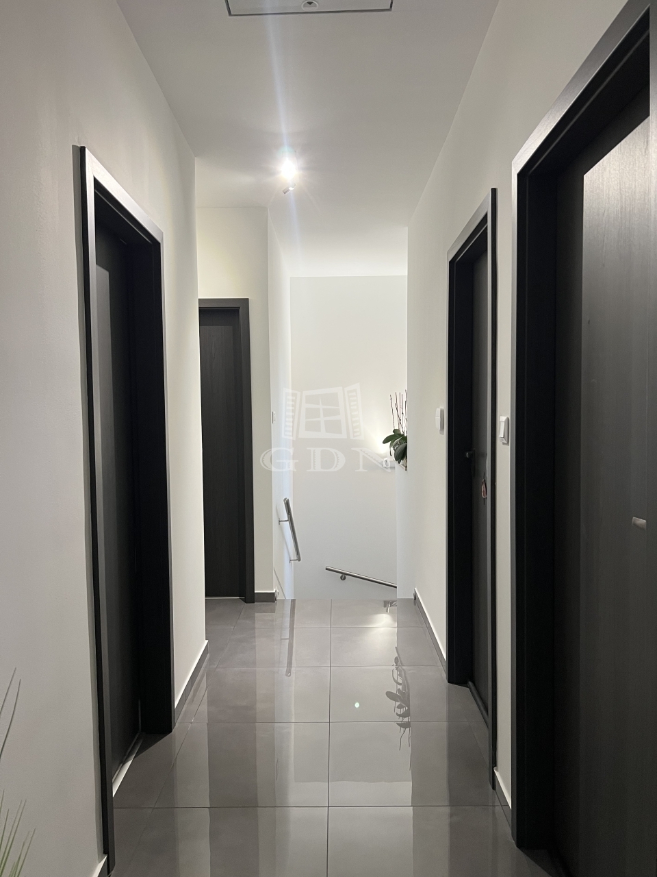 - Minden ablakon elektromos antracit alumínium redőny + szúnyogháló, a belső oldalon pedig zebra rolóval