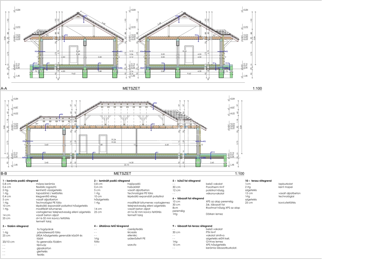 A Porotherm 30 N+F téglából épülő tartószerkezeti falak, a betonkoszorú és a fa födémes tetőszerkezet hosszú távú stabilitást biztosítanak. A kiemelkedő hőszigetelésről 10 cm-es polisztirol lábazati, 15 cm-es EPS homlokzati, valamint 30 cm-es ásványgyapot födémszigetelés gondoskodik.