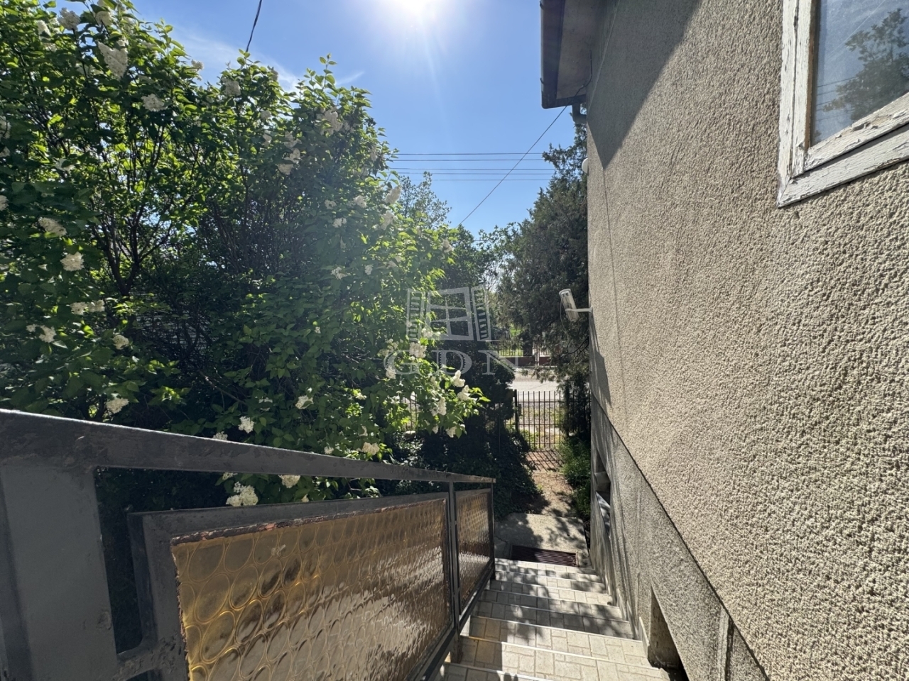 A telek 841m2, hátsó részében gyümölcsfák és szőlő található.