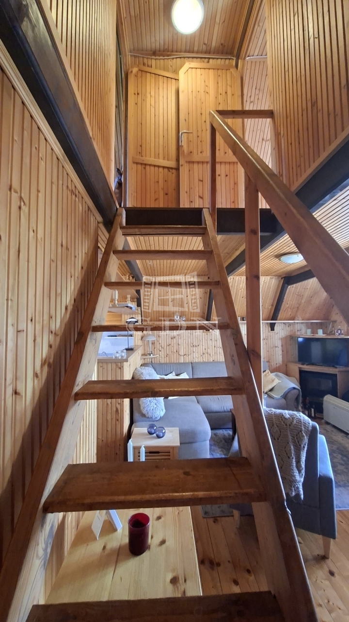 • Lépcsőn megközelíthető, faburkolatú szoba