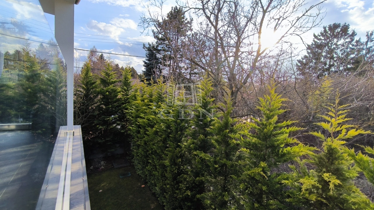 A nappali déli és nyugati tájolású, a garázs fölötti jakuzziból a dunaparti fák felett lenyugvó napban gyönyörködhetünk.