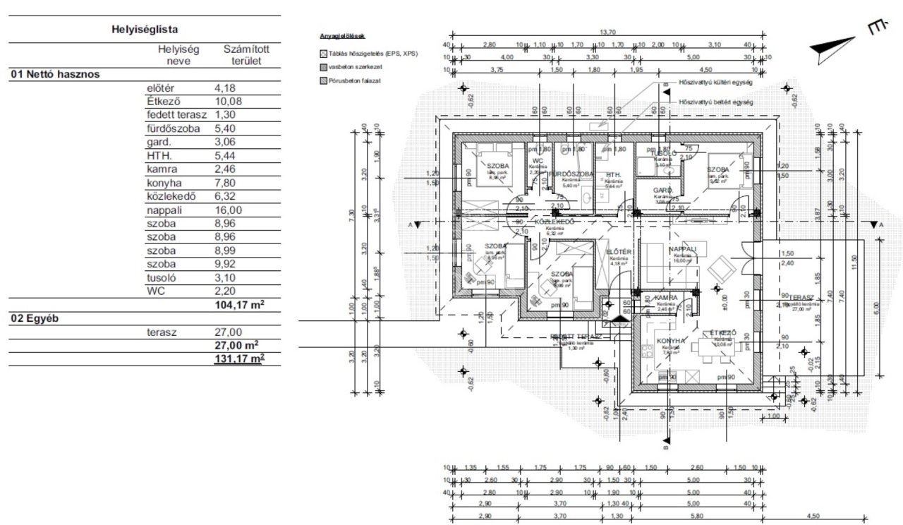 Elosztását tekintve 104m2 hasznos alapterületű