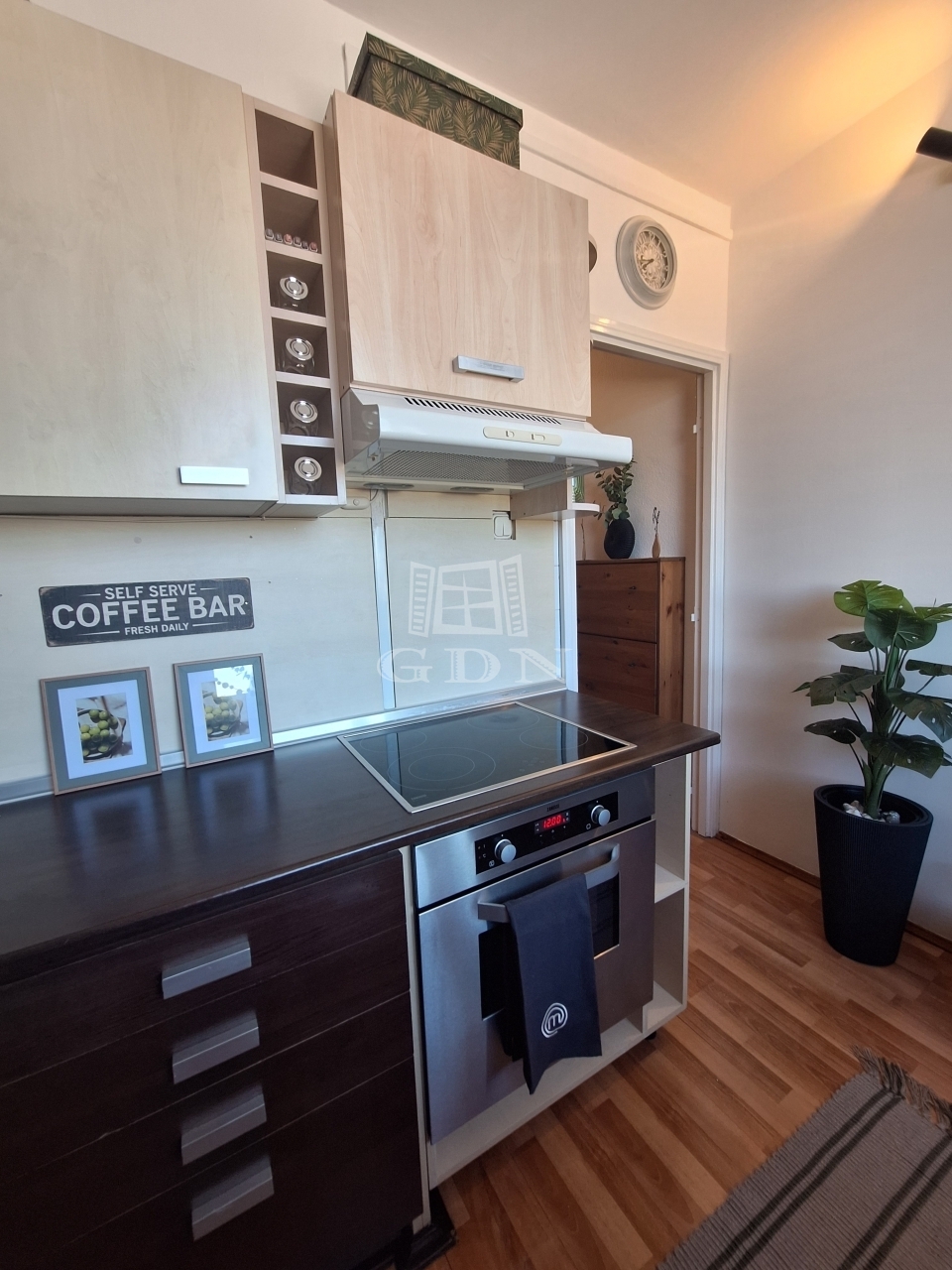 A 38 m²-es ingatlan a harmadik emeleten helyezkedik el, így a 3 m²-es erkélyről gyönyörű panorámás kilátás tárul elénk.