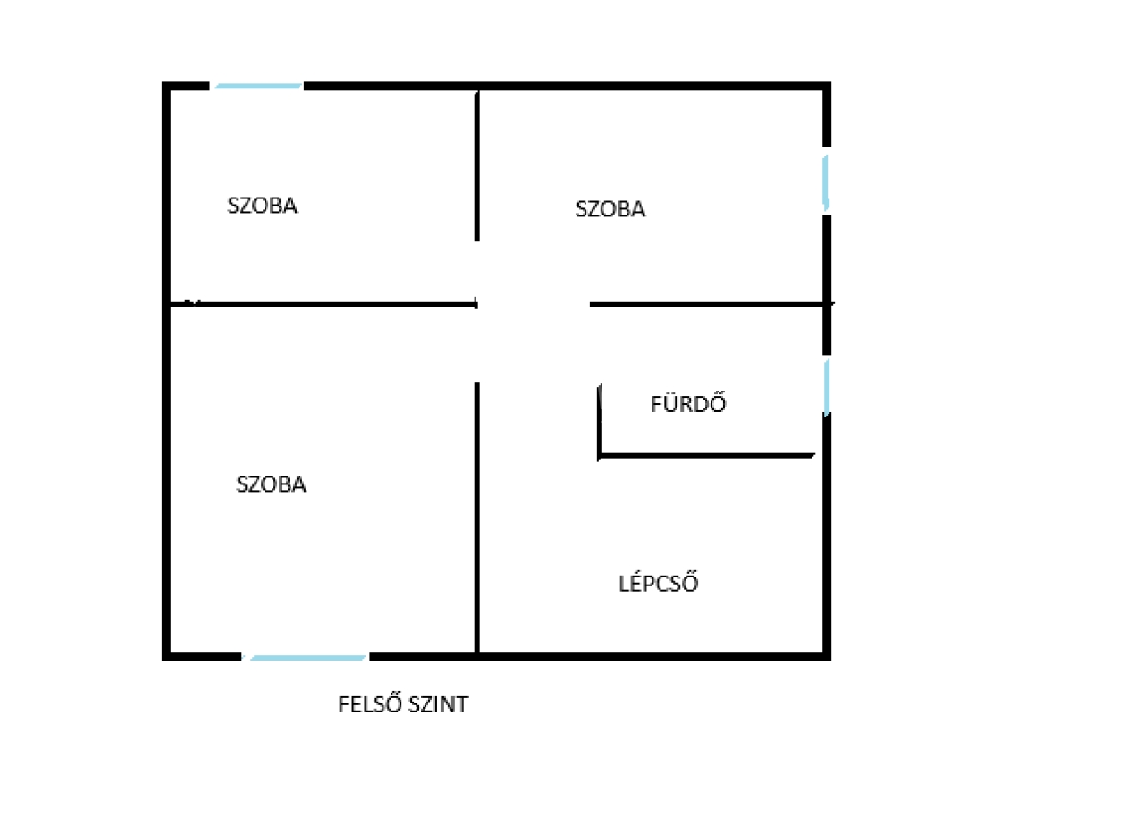 Emelet: 3 különnyíló hálószoba és egy második fürdőszoba.