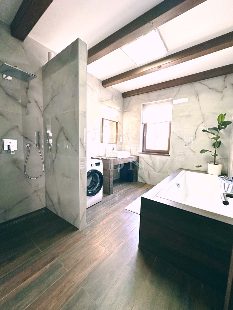 A műszaki tartalom nemcsak modern, hanem tudatosan felépített rendszer. Az 5 kW-os napelemnek köszönhetően az elektromos fűtés és a helyiségenként szabályozható padlófűtés rendkívül alacsony fenntartási költség mellett biztosít egyenletes, kellemes hőérzetet az egész lakásban.