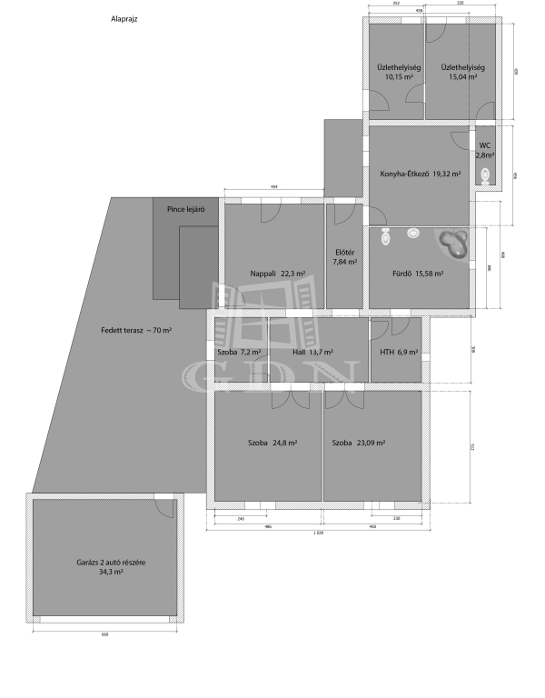 Gödöllőn 548 m2-es telken a Szilágyi Erzsébet utca és a Hunyadi János utca között, két utcafronttal, nettó 168,72m2-es + 34,3m2-es kétautós garázzsal, 13,5m2-es pincével és 70 m2-es fedett terasszal rendelkező családi ház eladó!