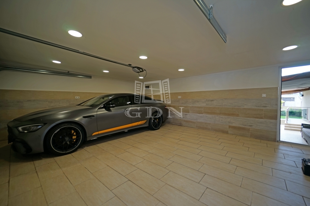 A parkosított kertet öntözőrendszer locsolja helyettünk. A megközelítőleg 70m2-es fedett terasz kiválló helyszíne a családi összejöveteleknek és a pihenésnek. Az itt található jacuzzi is a vételár részét képezi.