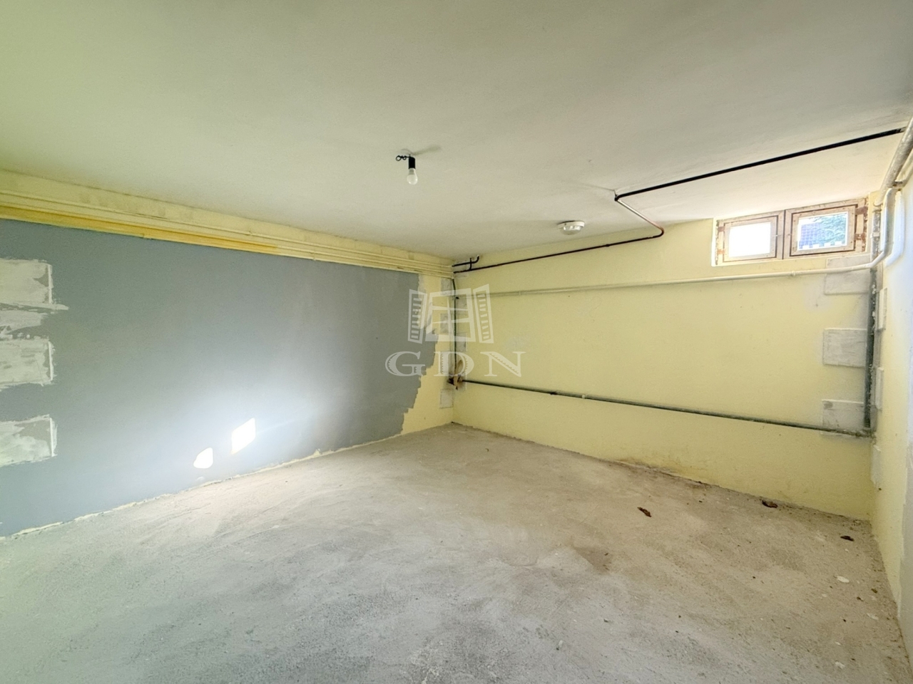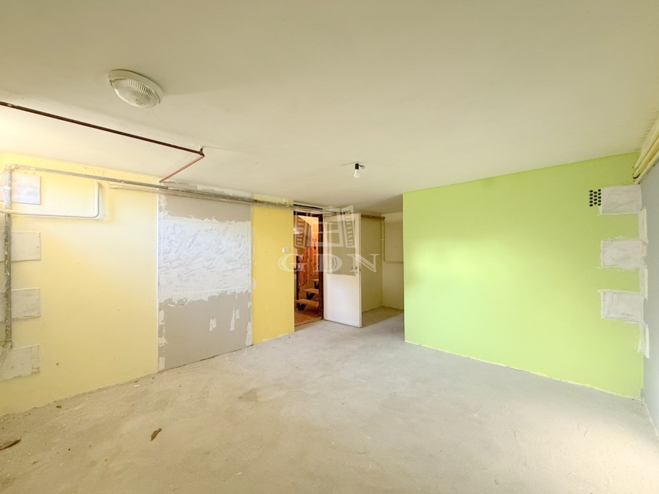- egy 2 helyiségre felosztott, ablakkal! ellátott 33 m2 - es szuterén szintnek - kiválóan alkalmas otthoni konditerem, iroda, dühöngő kialakítására,