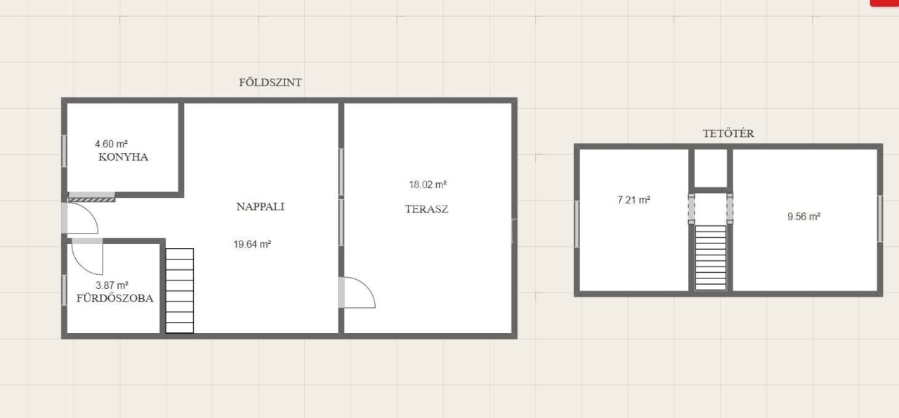 - Lépcsőn megközelíthető, két meghitt, faburkolatú szoba