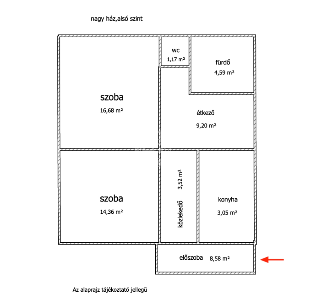A nagyházban radiátoros (emeleten, és termosztátokkal kiegészítve), és gázkonvektoros hőleadással, ezen túl pedig egy cserépkályha is rendelkezsére áll, amely mind a konyhát, előteret, és a 2 szobát befűti, elhelyezkedéséből adódóan.