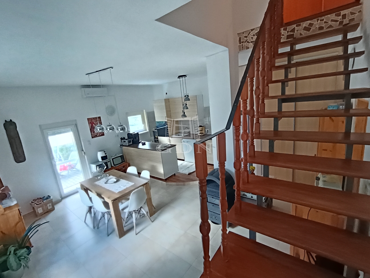 Földszinti részén egy amerikai konyhás nappali helyezkedik el, 36 nm alapterületen.
