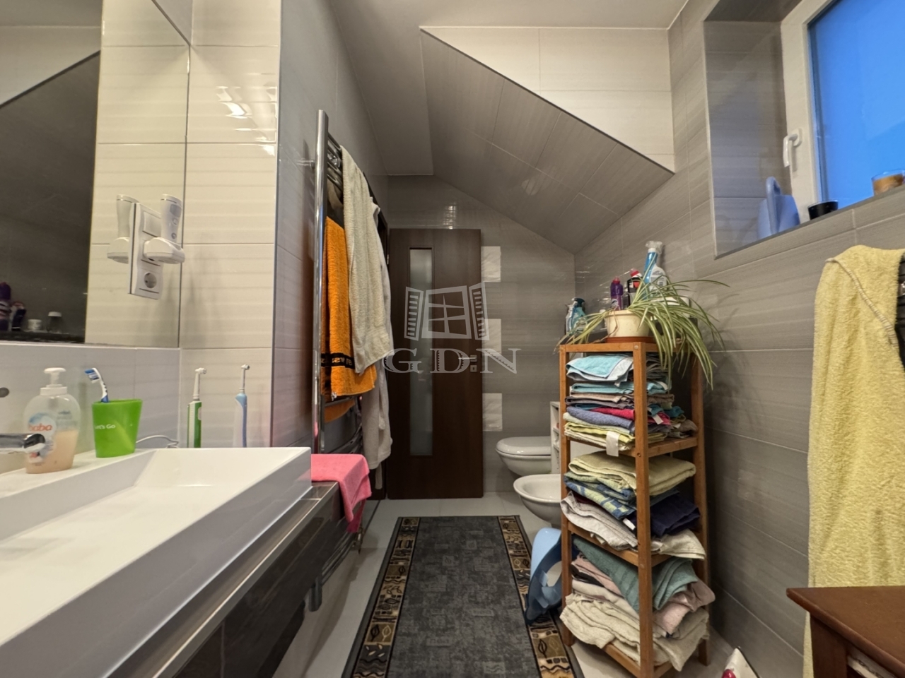 Az emeleten 3 hálószoba, gardrób, fürdőszoba található.