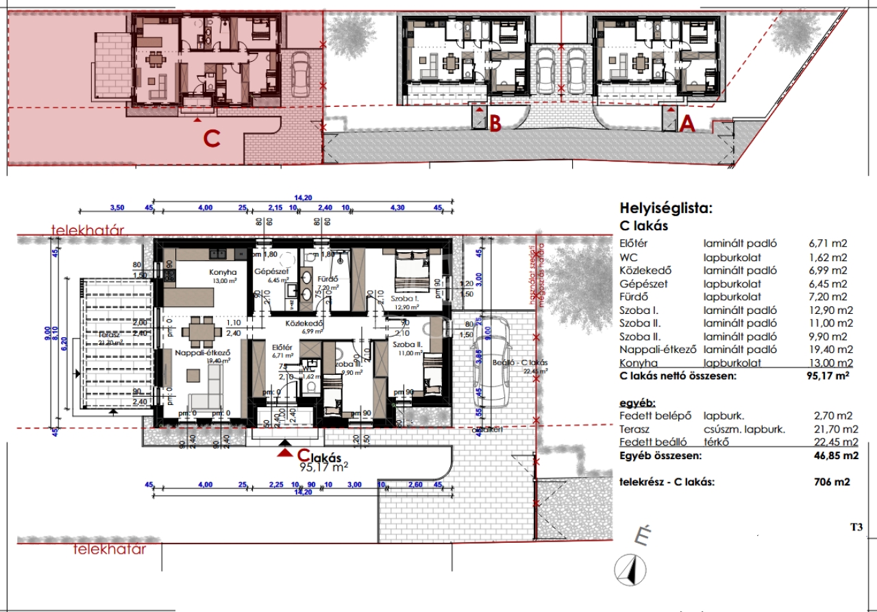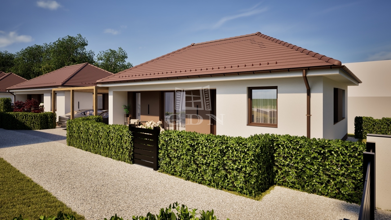 A Wienerberger Porotherm téglából épülő házak magas műszaki tartalommal épülnek. Tetőszerkezete C22 I. osztályú , rovar, gomba és lángmentesítővel kezelt faanyaggal kerül kivitelezésre. Fedése Terran vagy Bramac cseréppel történik, az összes rendszer tartozékkal, előírások szerint helyenként hófogóval. Bádogos szerkezetek, a külső vízelvezetések ereszcsatornái, a lefolyócsövei és az egyéb bádogos szerkezetek 0.6 mm vastag acéllemezből készülnek. Homlokzati falfelületek 15 cm vastag EPS hőszigetelő rendszert, a lábazatok 10 cm vastag XPS lábazati hőszigetelő rendszert kapnak. A padozatokba 10 cm vastag teherbíró EPS hab hőszigetelés kerül. A födém hőszigetelése 25 cm vastag ásványgyapot szigetelőanyaggal történik. Külső nyílászárói műanyag, három rétegű üvegezéssel szerelt, fokozottan hang-és hőszigeteltek. Fűtése, a háztartási helyiségben elhelyezett 10Kw teljesítményű Gree Versati 3 hőszivattyúval történik, padlófűtéses hőleadással szabályozható termosztáttal. A hőszivattyú biztosítja a melegvizet is, egy 200 literes hőtárolós víztartállyal. Nappaliában 3.5 Kw teljesítményű hűtő-fűtő klíma kerül. Az ingatlanban riasztó, kaputelefon, előkészítés történik. Beltéri ajtók, hideg-meleg burkolatok, szaniterek, csaptelepek választhatók.. Ha bővebb tájékoztatást szeretne, kérem keressen. Vegye igénybe irodánk szolgáltatásait. Hitelügyintézésben is segítünk.