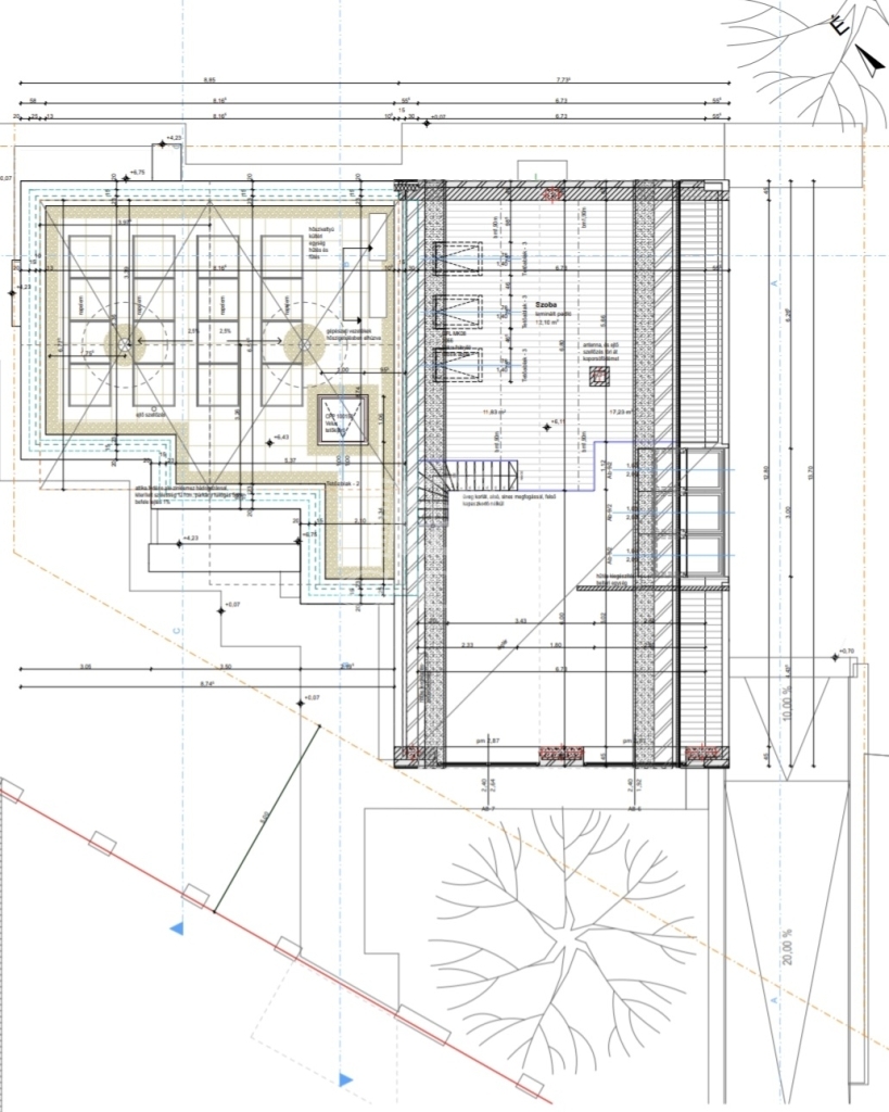 A kellő gondossággal épült, szerkezetkész állapotban lévő, több lakás kialakítására is alkalmas ingatlan szuterén szintjén több autó számára parkolási lehetőség biztosított.