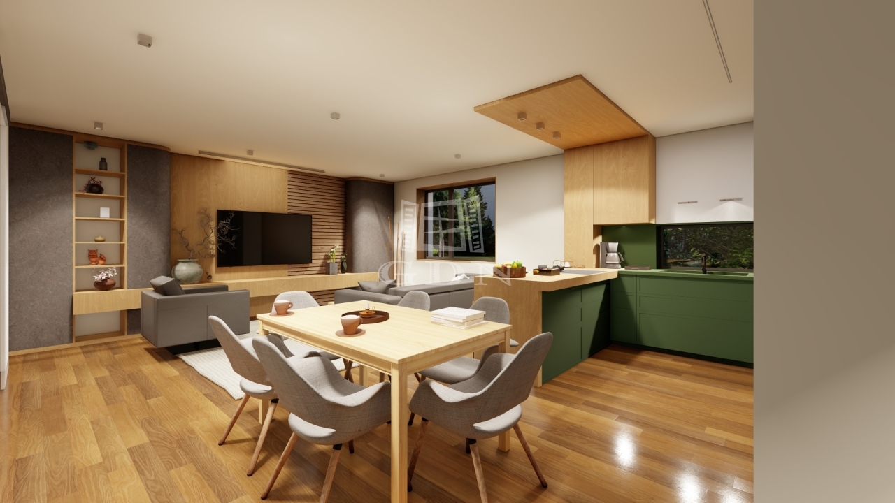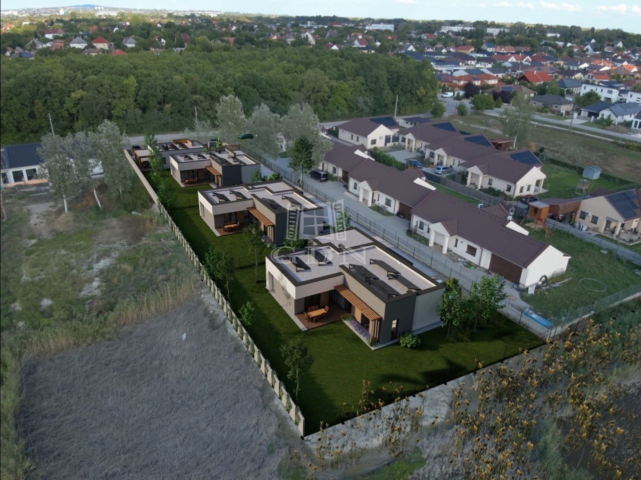 Az épületek tiszta, geometrikus vonalvezetésűek, mégis otthonosak. Az üvegfelületek összekötik a belső teret a kerttel, a meleg faburkolatok a homlokzaton, és a természetes anyaghasználat harmonikus kontrasztot alkot a modern architektúrával. A nappali–étkező–konyha egybenyitott tere az otthon szíve, míg a különválasztott és szülői és gyerek hálózóna biztosítja az intimitást és a kényelmet. A terasz és a nagyméretű kert minden igényt kielégít a család szabadban való együttlétéhez. Továbbá minden lehetőséget biztosít ahhoz, hogy az ott lakók a további elképzeléseiket is megvalósíthassák.