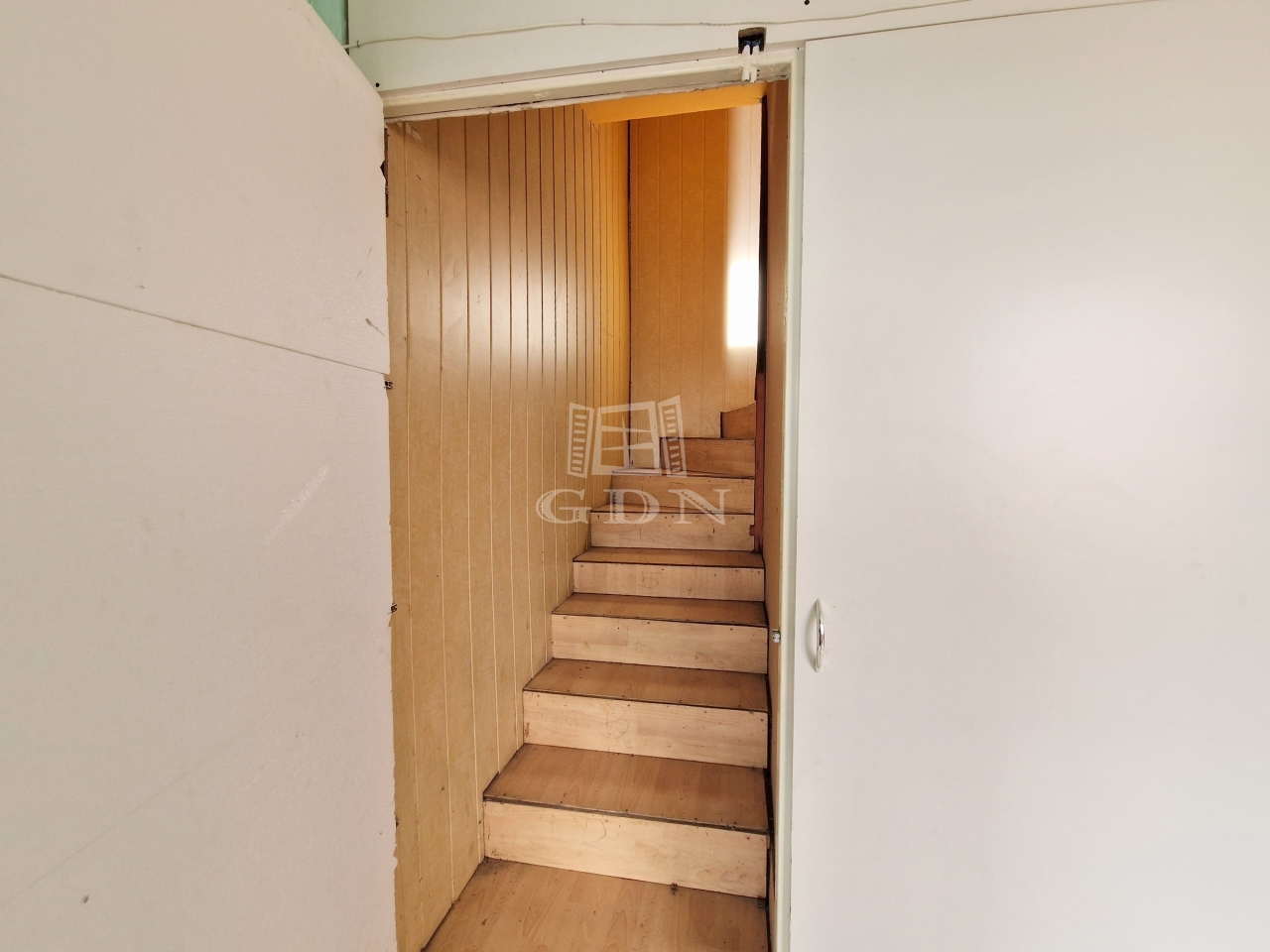 - KÖVETKEZŐ SZINTEN: egy szélfogónak, egy előtérnek, egy világos konyha - étkezőnek, 2 szobának, egy toalettel és fürdőkáddal felszerelt fürdőnek, egy spejznek, valamint egy lépcső fel és lejárónak.