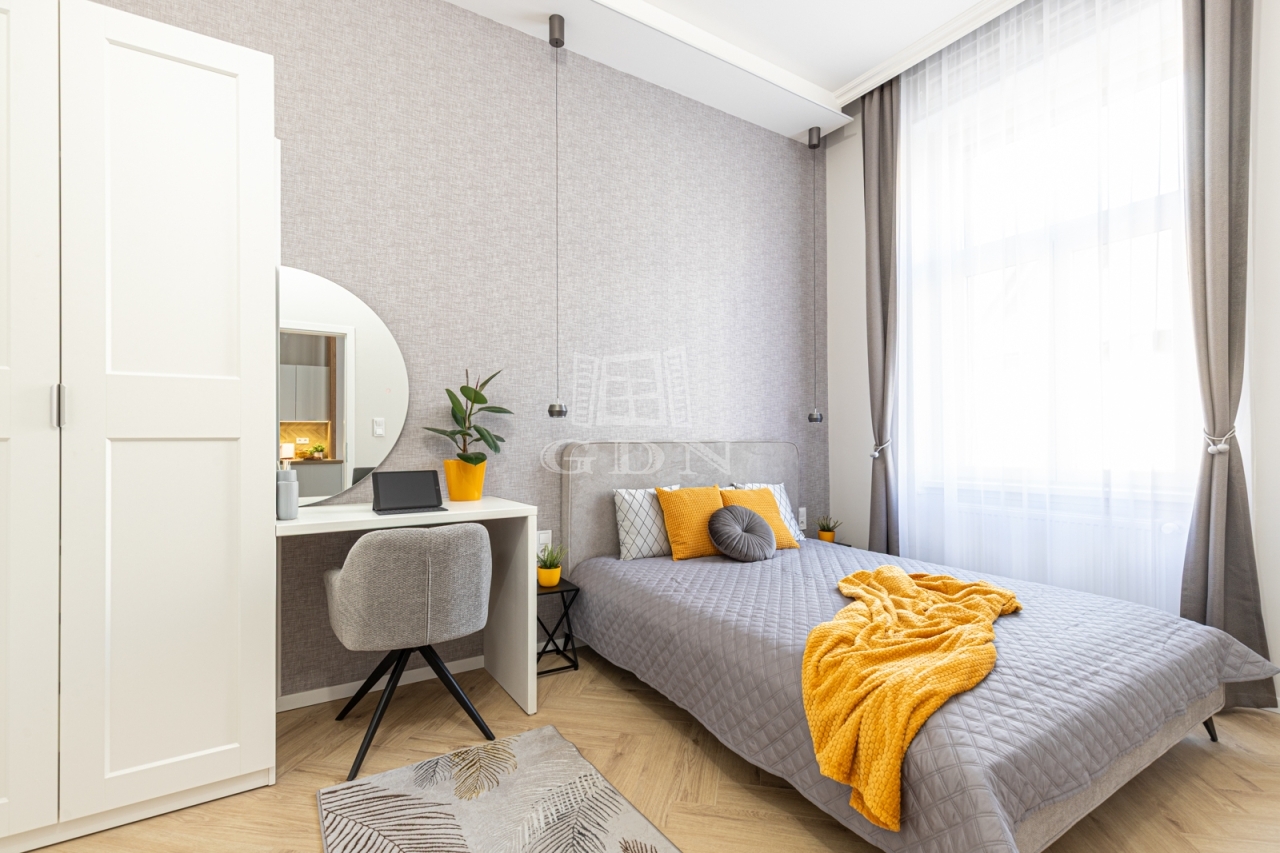 Budapest pezsgő központjában, a Dohány utca egyik legkeresettebb részén kínálunk megvételre egy 70 m²-es, prémium minőségben felújított lakást, pár lépésre a Blaha Lujza tér forgatagától.