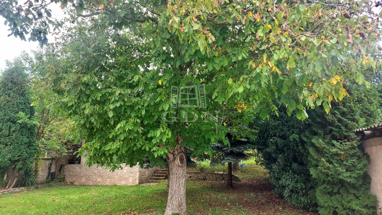 A kertet nagy fenyő, diófa és egyéb bokrok, cserjék teszik vadregényessé.