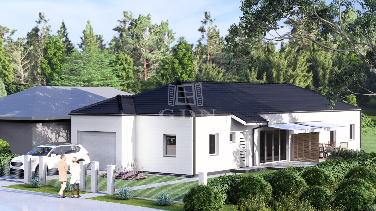 Három jól szeparált szoba biztosít privát teret minden családtag számára, miközben a nappali–étkező–konyha hármasa természetes központként működik. A WC és fürdő rugalmas kialakítása lehetővé teszi, hogy zuhanyzó vagy kád szerint alakítsd a teret, a garázs pedig nem csupán parkolást, hanem tárolást is ad. A nyugati tájolás és a 2,6 m-es belmagasság világos, levegős atmoszférát biztosít, ahol minden pillanat élménnyé válik.