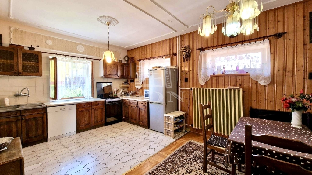 - Az első emeleten - központi szint - található 2 hálószoba, egy nagy gépesített konyha - étkező, egy nagy fürdőkádas fürdőszoba, közlekedő folyosó és nagy nappali a hozzá tartozó hatalmas, fedett, panorámás terasszal.