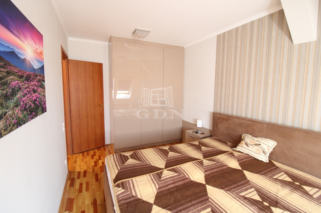 A felső szintre egy kényelmes fokkiosztású lépcsőn juthatunk fel, ahol is a br. 14nm terjedelmű világos előszoba (itt akár külön dolgozó vagy közösségi tér is kialakítható) valamint a 6nm-es kádas duplamosdós fürdő, kettő egyenként br.15,6 és 14nm terjedelmű hálószoba és egy közel 5nm es gardrób került kialakításra.