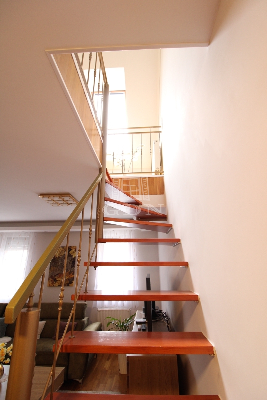 Eladásra kínálok egy harmadik emeleti, erkélyes belső kétszintes 88nm (bruttó 101nm) nagyságú duplakomfortos klimatizált, amerikai konyhás nappali, plusz kettő hálószobás újszerű állapotú lakást, Zugló csendes részén egy 2005-ben épült téglaszerkezetű szigetelt társasházban.