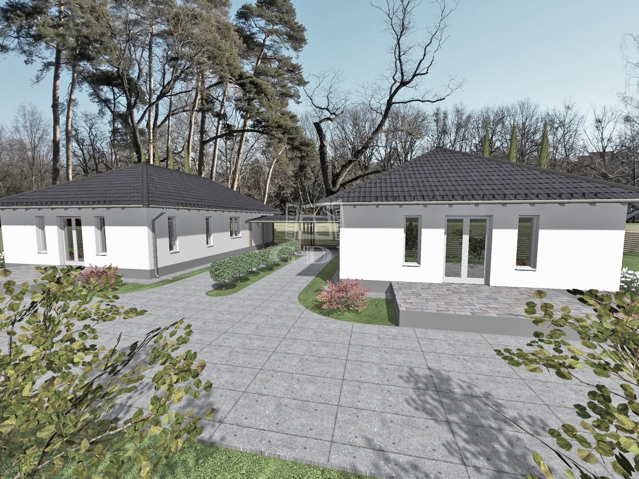 Az első házhoz 470 m²-es, míg a hátsó házhoz egy 560 m²-es, kizárólagos használatú, lekerített telekrész tartozik.