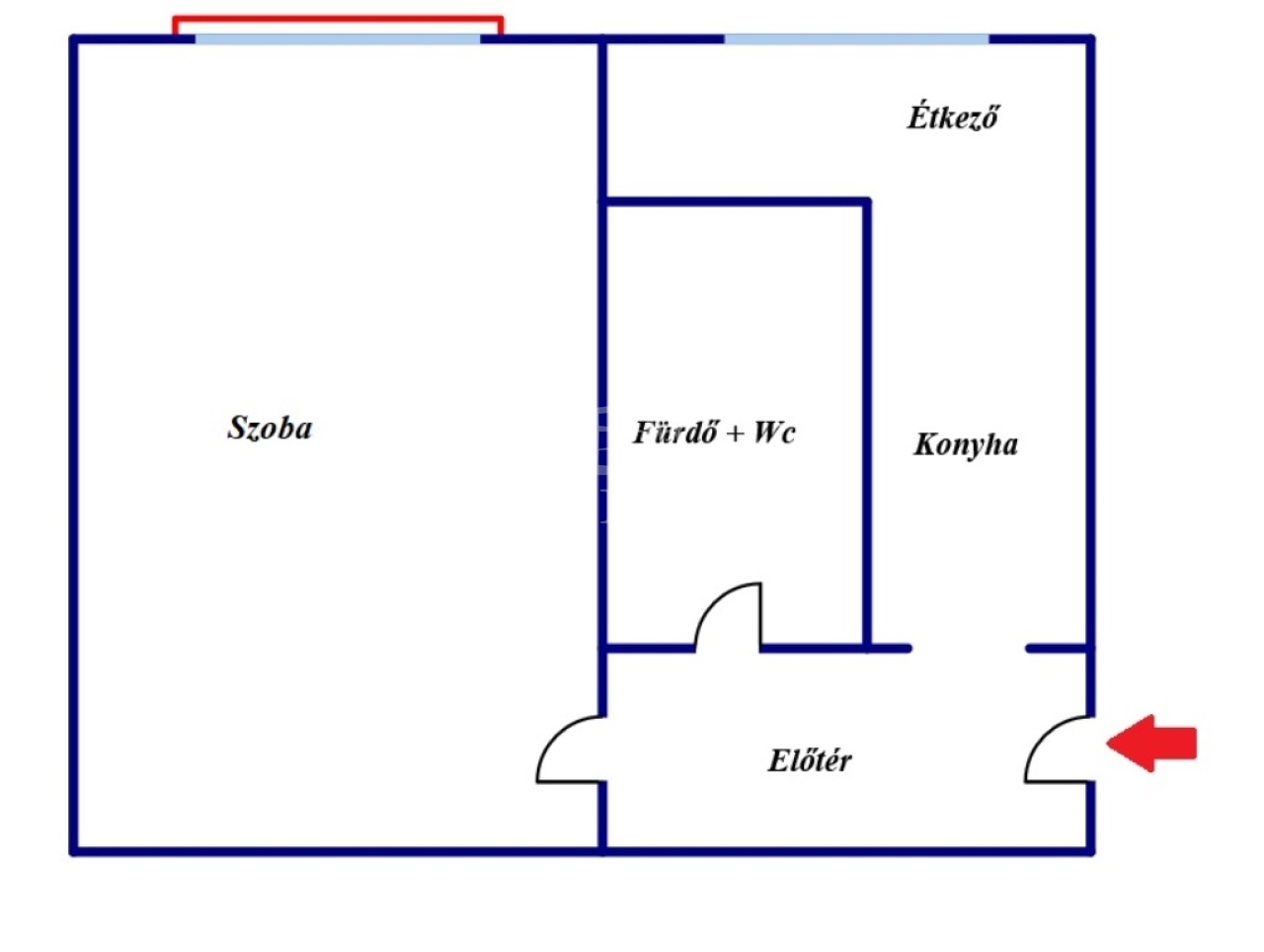 A lakás nagysága 37 nm, elosztását tekintve 1 szoba, kádas fürdő + a wc egy helységben, valamint előtér és konyha étkezővel került kialakításra.