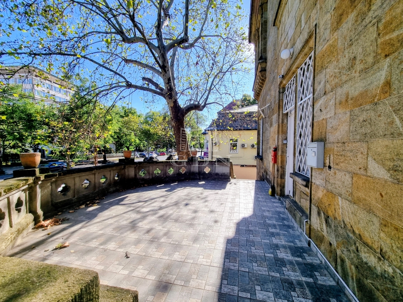 Az 1918- ban épült villa historizáló - eklektikus stílusban épült, az építész annak idején a házat saját magának tervezte, napjainkban folyamatosan karbantartott, állapot megőrzése, illetve javítása érdekében a társasház folyamatosan törődik vele, pályázatokon indul! Eladó ingatlanunk a magasföldszinti szinten helyezkedik el, (alaprajzon a lilával körbejelölt) egyik különlegessége, hogy a házba egy tekintélyes 33 nm-es külső teraszról jutunk be, majd a lakást egy zárt lépcsőházból közelíthetjük meg, ami a szomszéd ingatlannal kizárólagos használatban van.