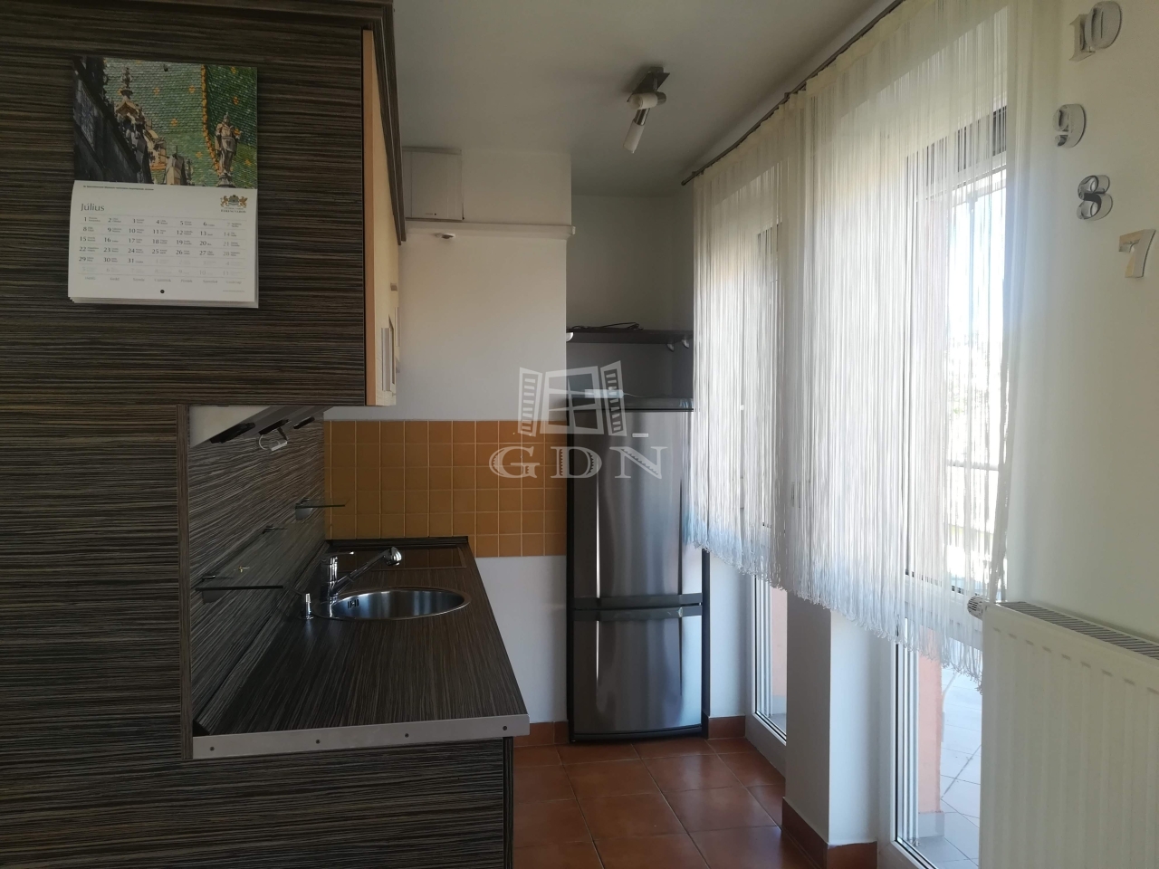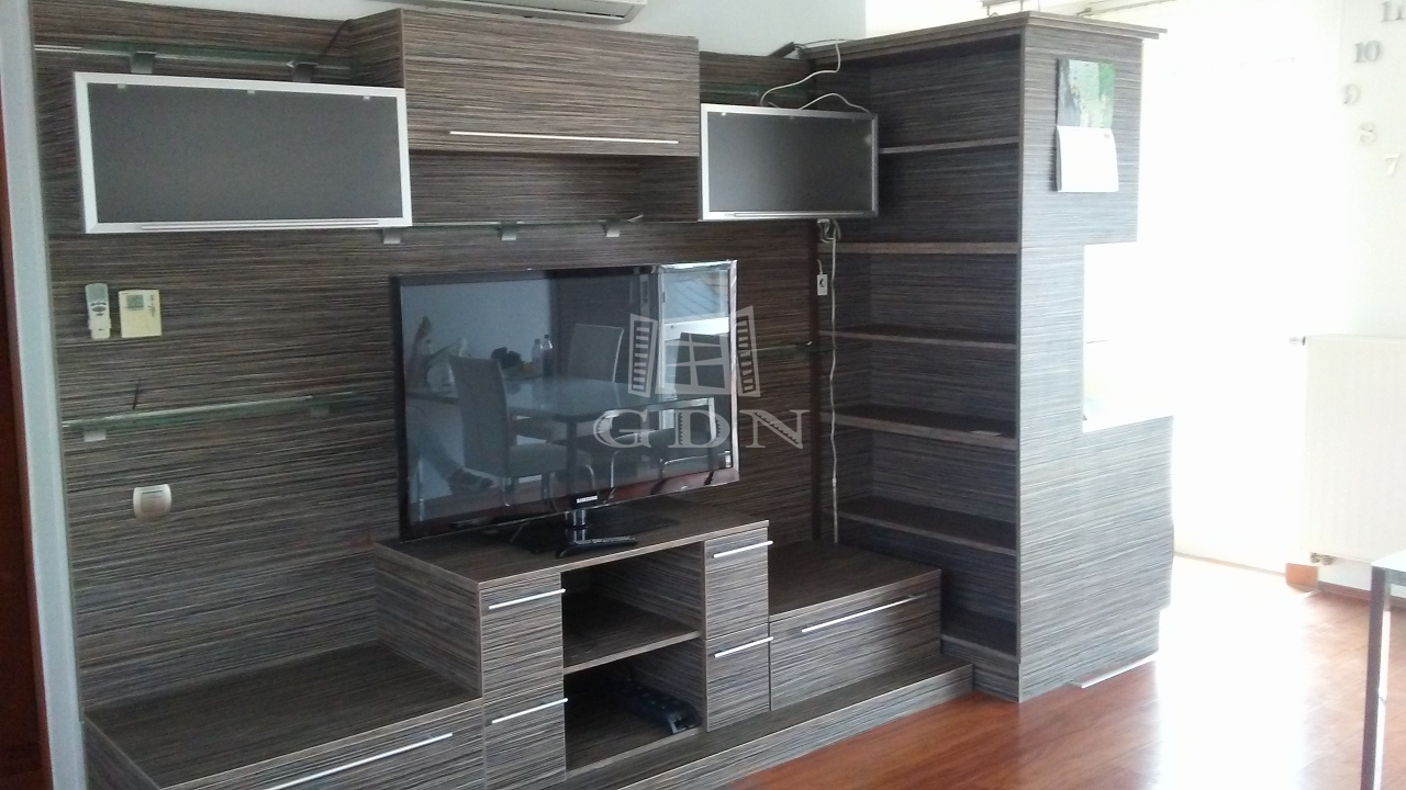 A lakás bútorozott és gépesített (mosógép, mosogatógép, sütő, főzőlap, hűtő, TV, klímaberendezés mindkét szobában).