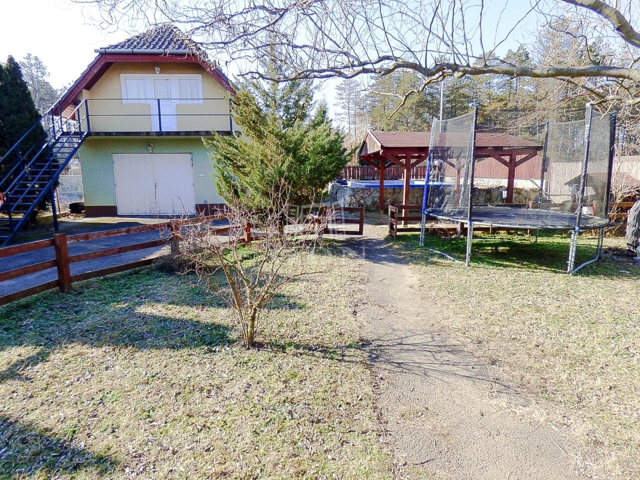 A kert rendezett, teljes körűen biztosítja a kikapcsolódást, pihenést az egész család számára.
