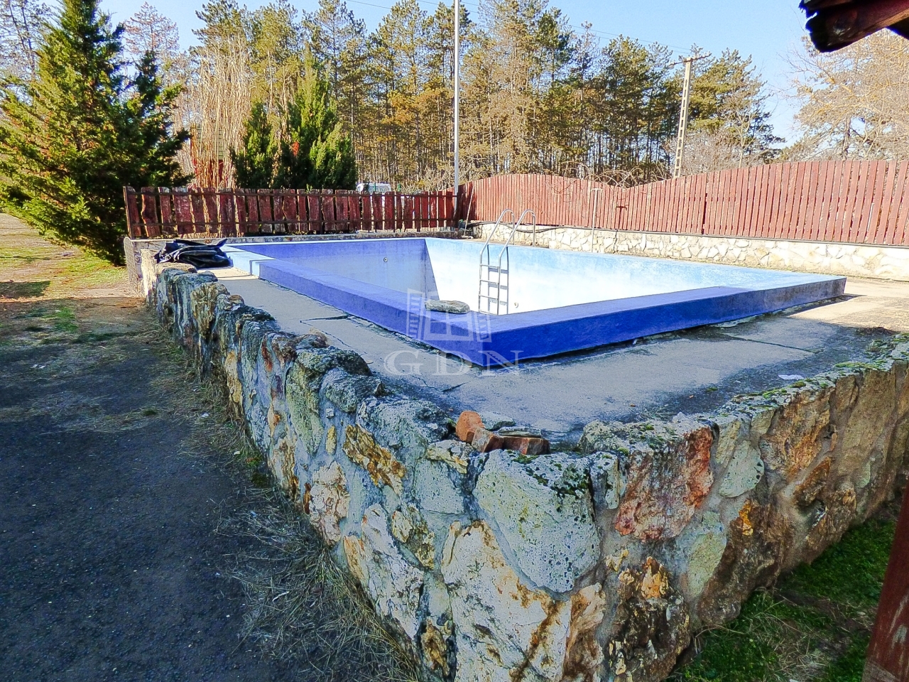 Veresegyház csendes mellékutcájában, a tavak közelében, 856 nm-es telken lévő, 1996-ban saját részre épült, 180 nm-es, két szintes, 5 szobás, vasbeton födémes, jó állapotú, gáz cirkó (hideg burkolatok alatt padlófűtéssel a földszinten), - fa tüzelésű kandalló - és hűtő-fűtő klíma fűtéses, dupla komfortos, Keleti fekvésű, riasztóval felszerelt, nagy erkélyes (2*9,5 nm) - és teraszos (35 nm), medencés családi ház eladó.