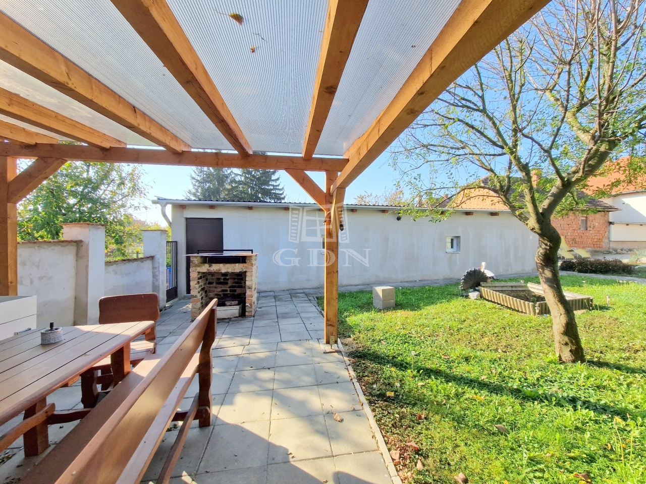 pihenésre szolgáló kiülőt a hozzá tartozó grillel, rendelkezésünkre áll egy fúrt kút, továbbá szilva, barack, meggy és alma hasznait élvezhetjük.