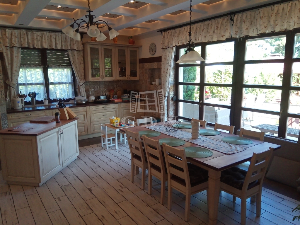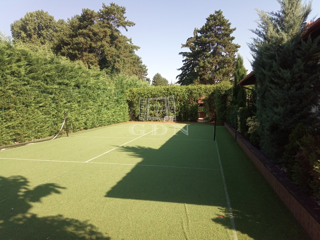Zamárdi keresett részén, a víztől ötszáz méterre, kényelmesen megközelíthető helyen eladó ez a luxus, számos célra hasznosítható, jelenleg LAKÓHÁZ minősítésű ingatlan. A ház 2017-ben épült minőségi anyagok felhasználásával. Egy gyönyörű parkosított kert öleli, amelyben kerti beálló, pihenő, fedett grillező, egy hatalmas műfüves sportpálya, kis játszótér és egy úszómedence is található. Itt kapott még helyet egy 24 nm területű kerti tároló is, amely akár plusz nyaralóként is funkcionálhat. A ház vízellátását a vezetékes vizen kívül két kút is segíti. A ház kiválóan alkalmas mind állandó lakásra mind üzleti célra. A földszinten egy belépőből nyílik a hatalmas mosókonyhával és beépített bútorzattal ellátott nagy területű garázs. A belépő-közlekedő helyiségből juthatunk fel a ház emeletére, de innen nyílik a tágas és kertkapcsolatos nappali is amelyben helyet kapott egy hangulatos bár is. Ugyancsak a nappaliból nyílik egy kertkapcsolatos hálószoba saját kádas-zuhanyzós fürdővel és vécével, valamint innen nyílik két gardrobe is, továbbá innen juthatunk még egy plusz ugyancsak kertkapcsolatos helyiségbe, amelyben egy télen is használható jacuzzi várja a pihenni vágyókat. A nappali mellett kapott helyet egy tágas konyha étkezővel. Ez is közvetlen kertkapcsolattal bír. A földszinten található még három külön hálószoba saját tusolós fürdővel vécével. A ház emeletén található hat hálószoba, ebből 4 egymásba is nyitható. Itt két hálónak saját fürdőszobája van és van még két külön tusolós fürdő is wc-vel. Itt került kialakításra egy óriási egy légterű hobbi szoba is, amely akár további hálószobákká alakítható. Az épület teljesen légkondicionált. Fűtése alapvetően gázkazánról történik, de lehetőség van a klímákkal vagy kandallóval való fűtésre is. A használati melegvíz ellátást gáz és villany is biztosítja. Az ingatlan beépített bútorzattal (igény szerint teljes bútorzattal) eladó.
