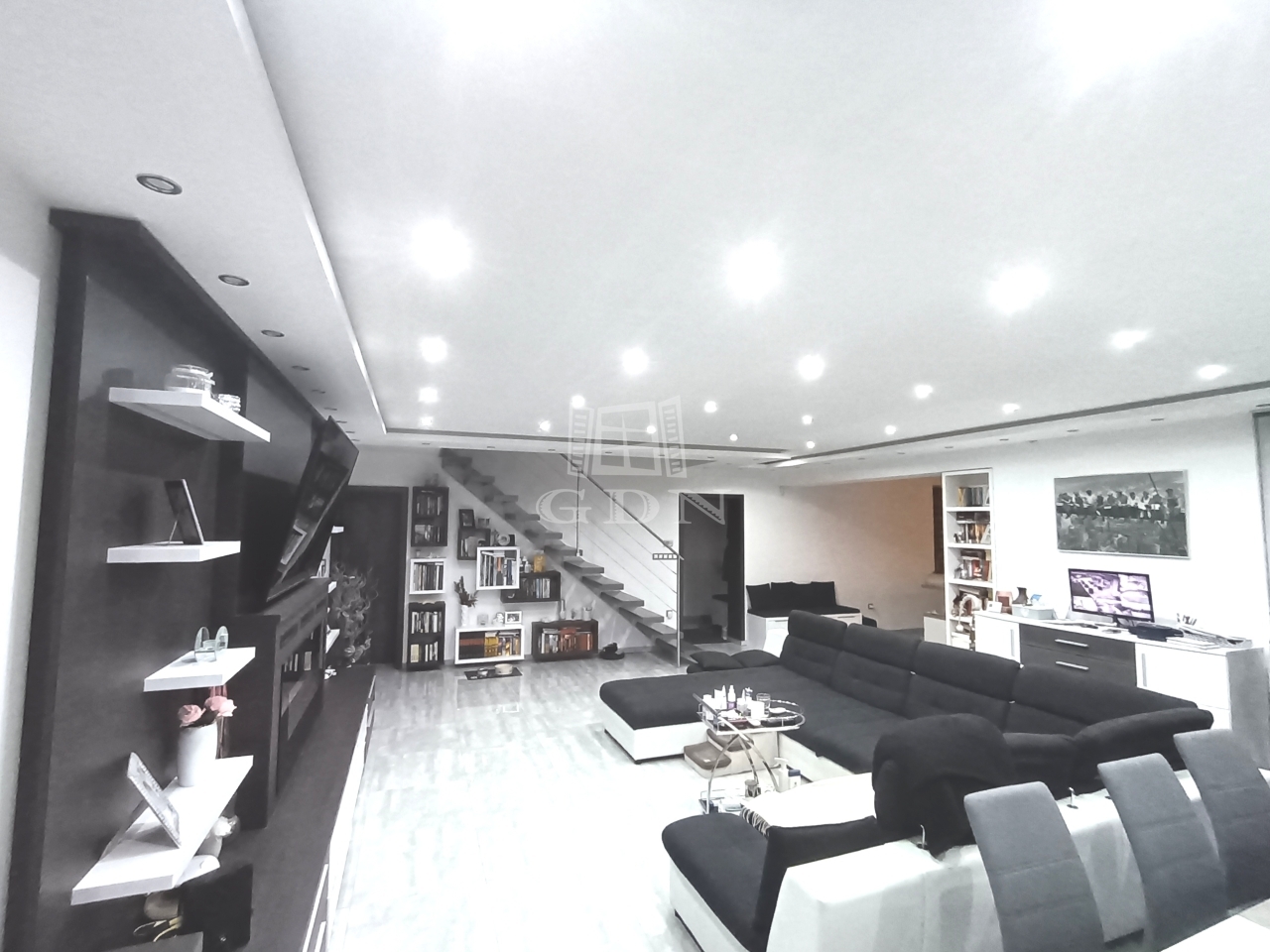 Egy hatalmas amerikai konyhás nappali, 3 hálószoba, 1 tágas gardrób szoba, és 1 dolgozó szoba is helyet kapott az ingatlanban. Ezen felül 2 fürdőszoba+wc és 1 különálló vendég wc, mosókonyha és gépház is megtalálható.