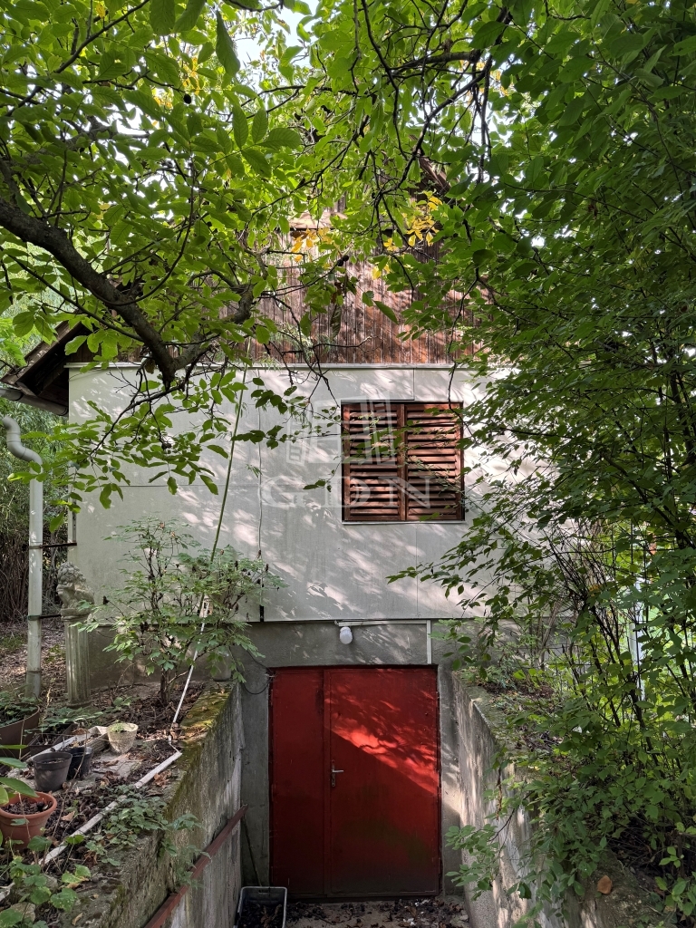 A telek 1430m2, egy része fákkal beültetett, hátsó részében szőlős található.