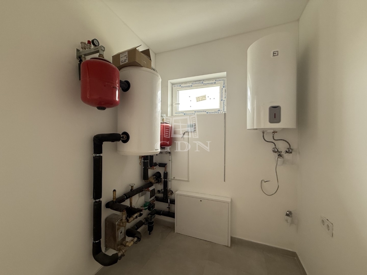A nyílászárók műanyagból készültek,3 rétegű hőszigetelt üvegezéssel, rejtett redőny tokkal. A burkolatok magas minőségű járólap, illetve laminált padló. Fűtése-melegvíz: hőszivattyú megoldással, padlófűtéssel. 1db klíma a vételárban.