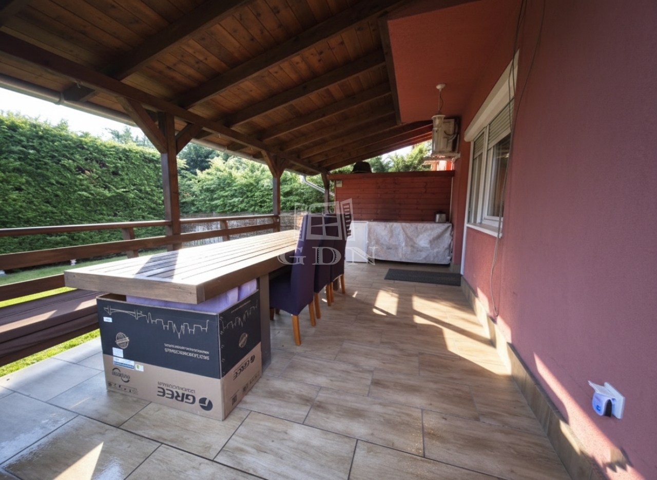 Az épület 2006-ban épült beton alapra tégla falazattal, beton födémmel, szomszéd felé dupla falazattal, és betoncserép fedéssel. A falazat körbe 8 cm dryvit szigetelést, thermo műanyag nyílászárót (redőnnyel és rovarhálóval), kondenzációs gázkazánt, és helységenként inverteres hűtő-fűtő klímát kapott. Nappaliban elhelyezésre került egy kandalló, a lakás biztonságáért pedig távfelügyeletes riasztó felel. A minimális költségekért pedig felhelyeztek 7 kw napelem rendszert ami Szaldó elszámolással rendelkezik. Udvara környezete tiszta rendezett, egy autó számára fűtött garázs áll rendelkezésünkre, két autónak pedig felszíni beálló. Az udvar szépségéért automata öntözőrendszer felel. Hátul található egy kellemes hangulatot árasztó 18 nm-es fedett terasz, mellette pedig egy 8 nm-es szerszám tároló található.