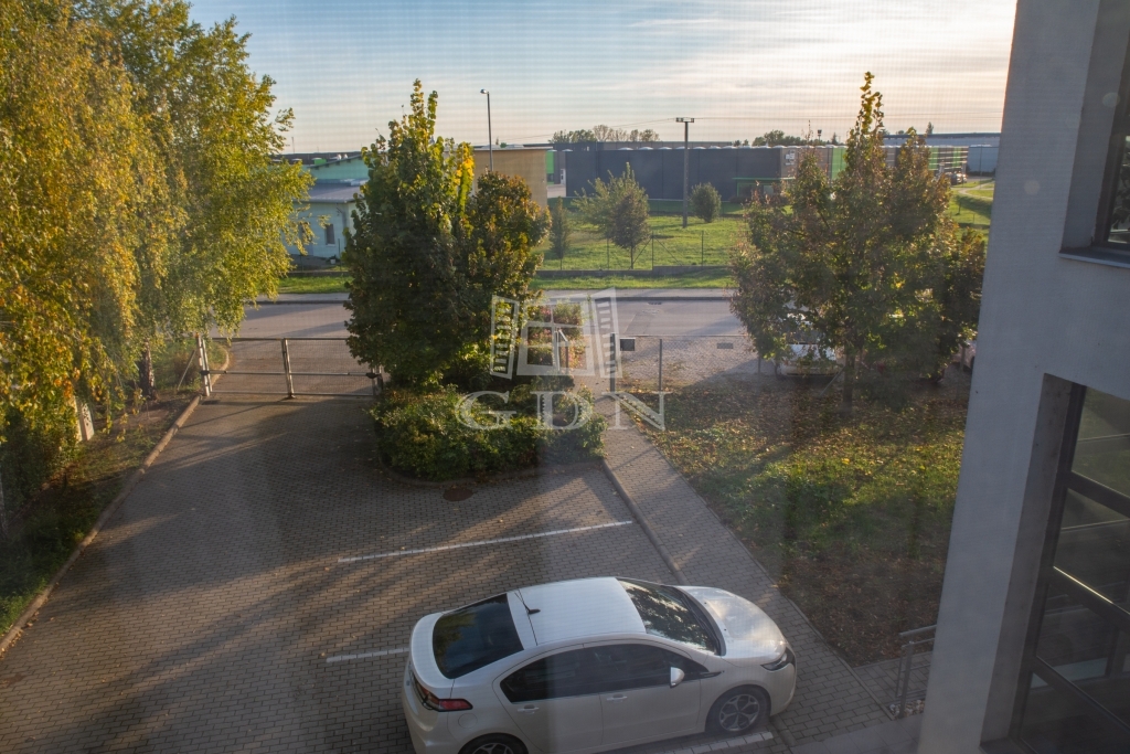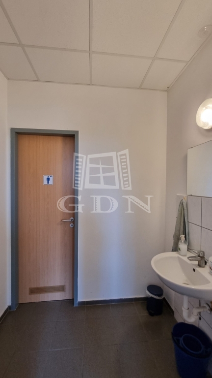 A csarnokhoz bérelhető egy újszerű állapotú, első emelti, klímás, 45 m2-es irodahelyiség közös használatú WC/mosdóval és teakonyhával. Igény esetén tárgyalóhelyiség is bérelhető.