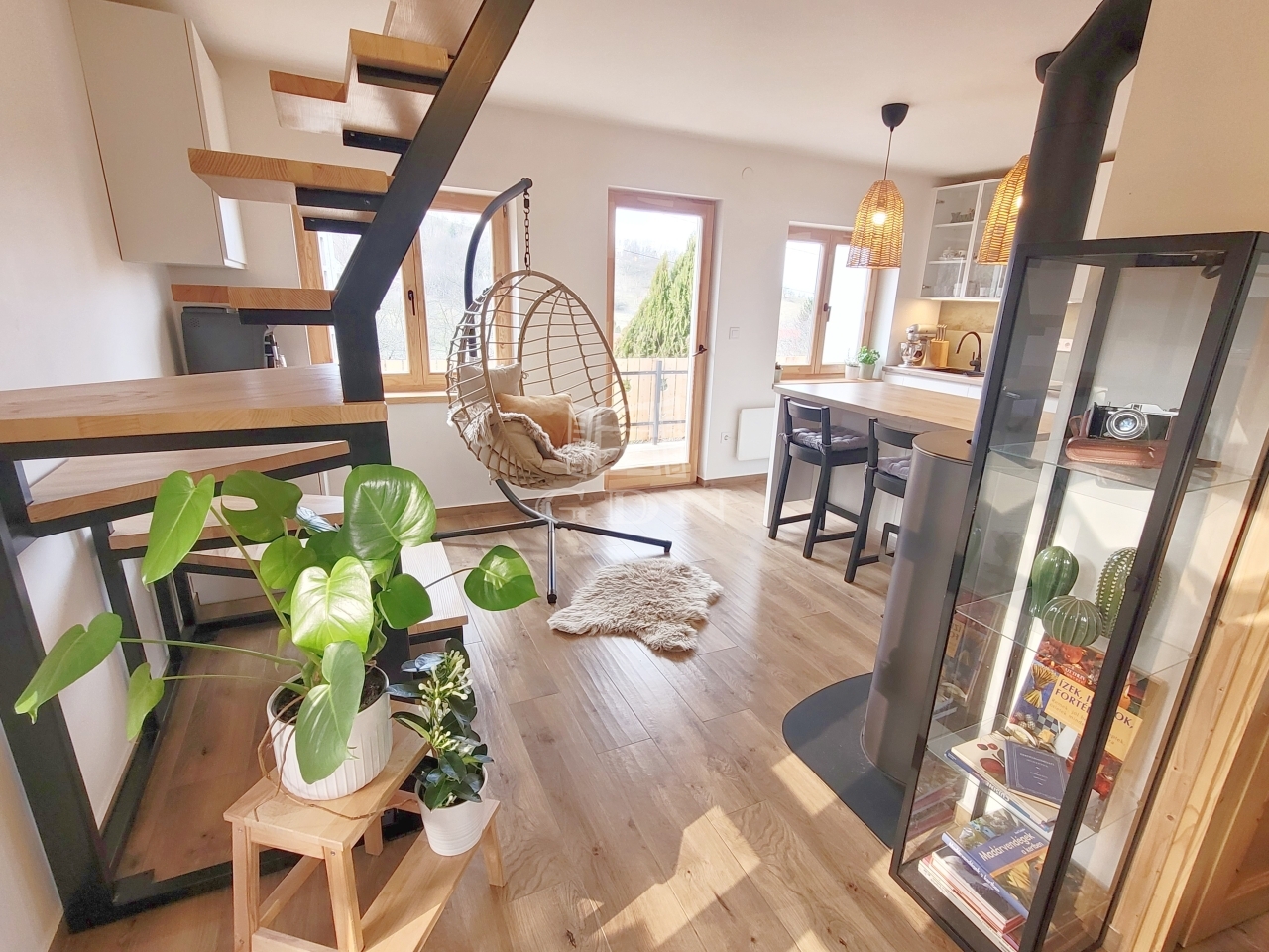 A második szinten található a hálószoba és a nappali. Erről a szintről egy félköríves erkély is megközelíthető.