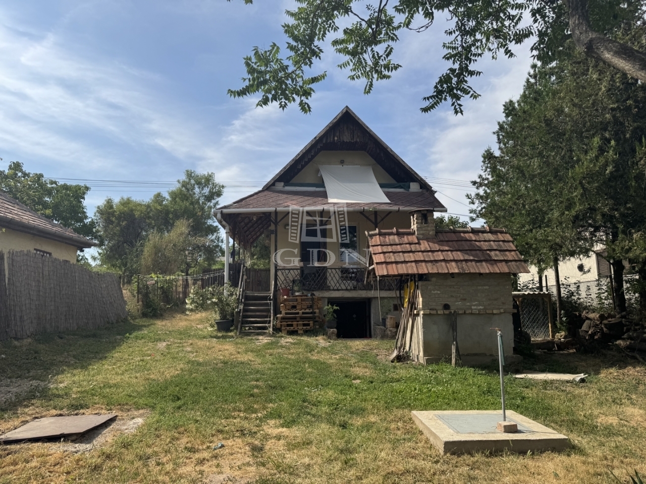 A telek 1050m2, teljesen körbekerített, rendezett. Több gyümölcsfa, ásott és fúrt kút is található rajta.