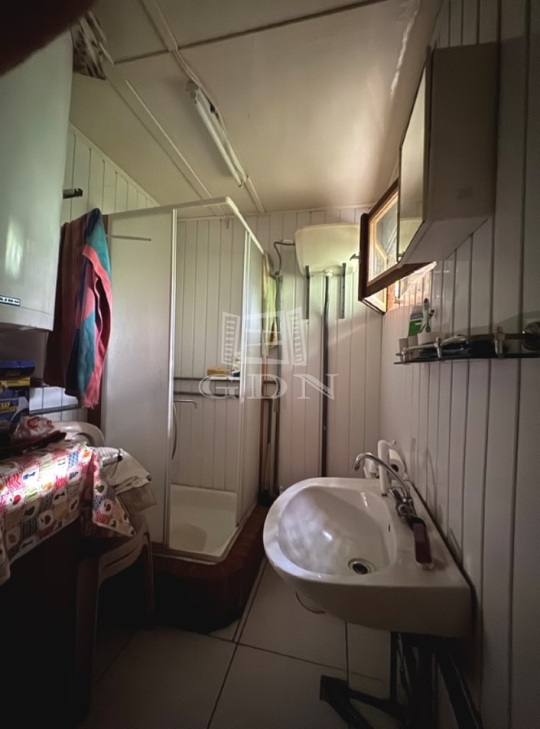 A földszint szintén 23m2, előtér, szoba, főzőfülke, fürdőszoba WC-vel került kialakításra.