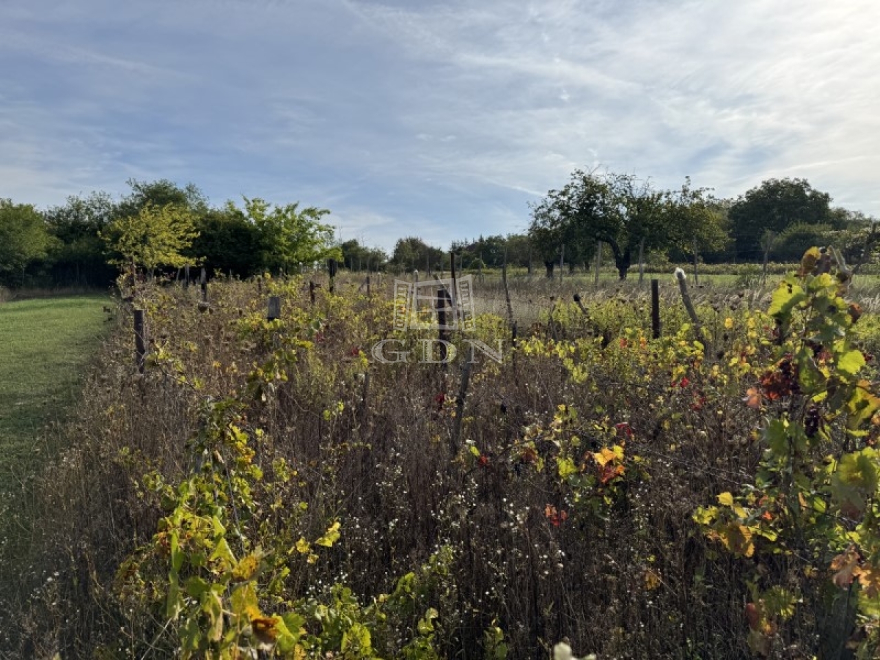 A telek 1430m2, egy része fákkal beültetett, hátsó részében szőlős található.