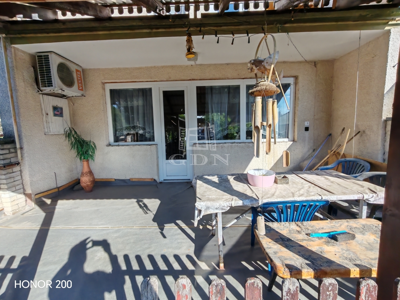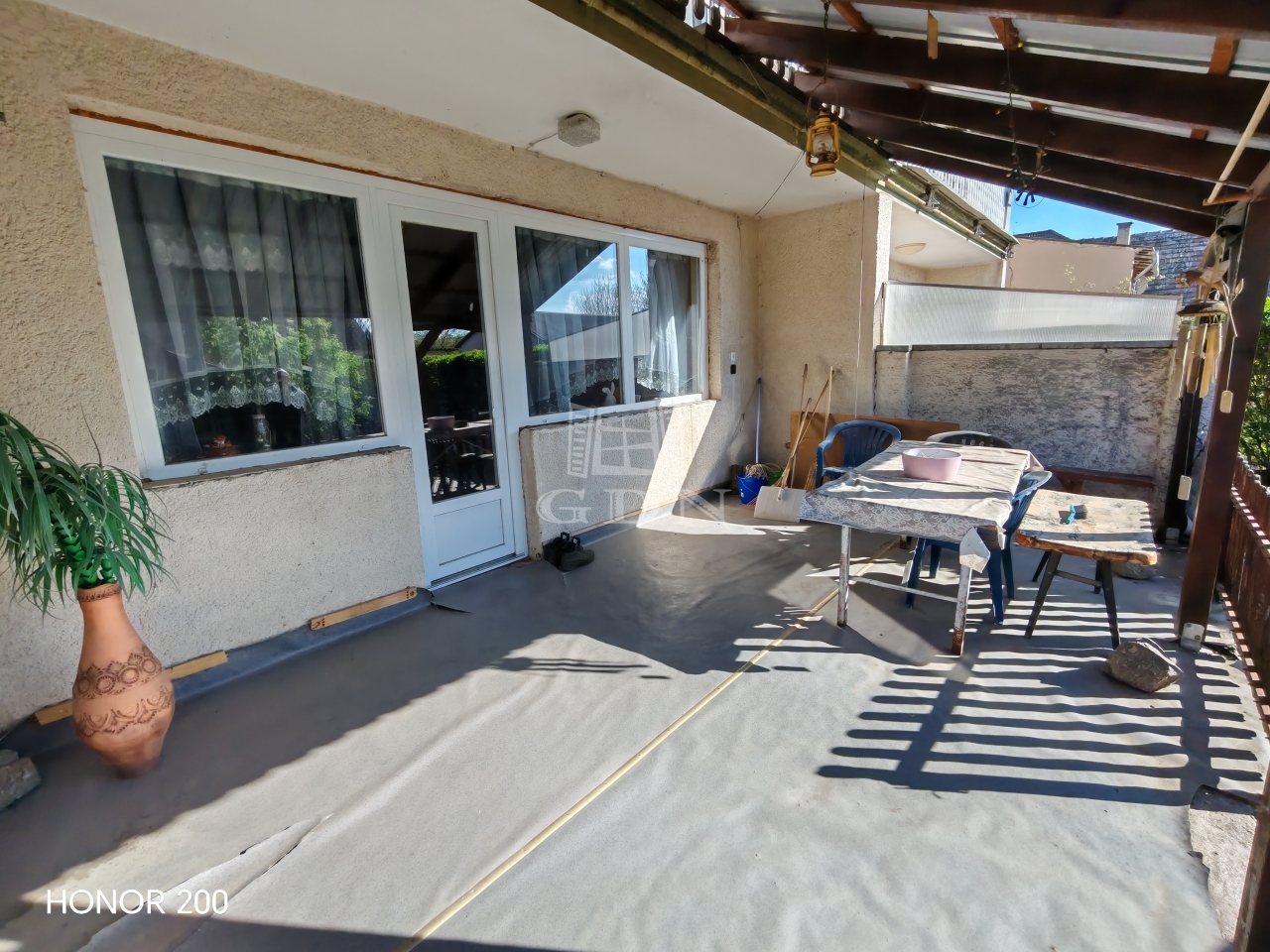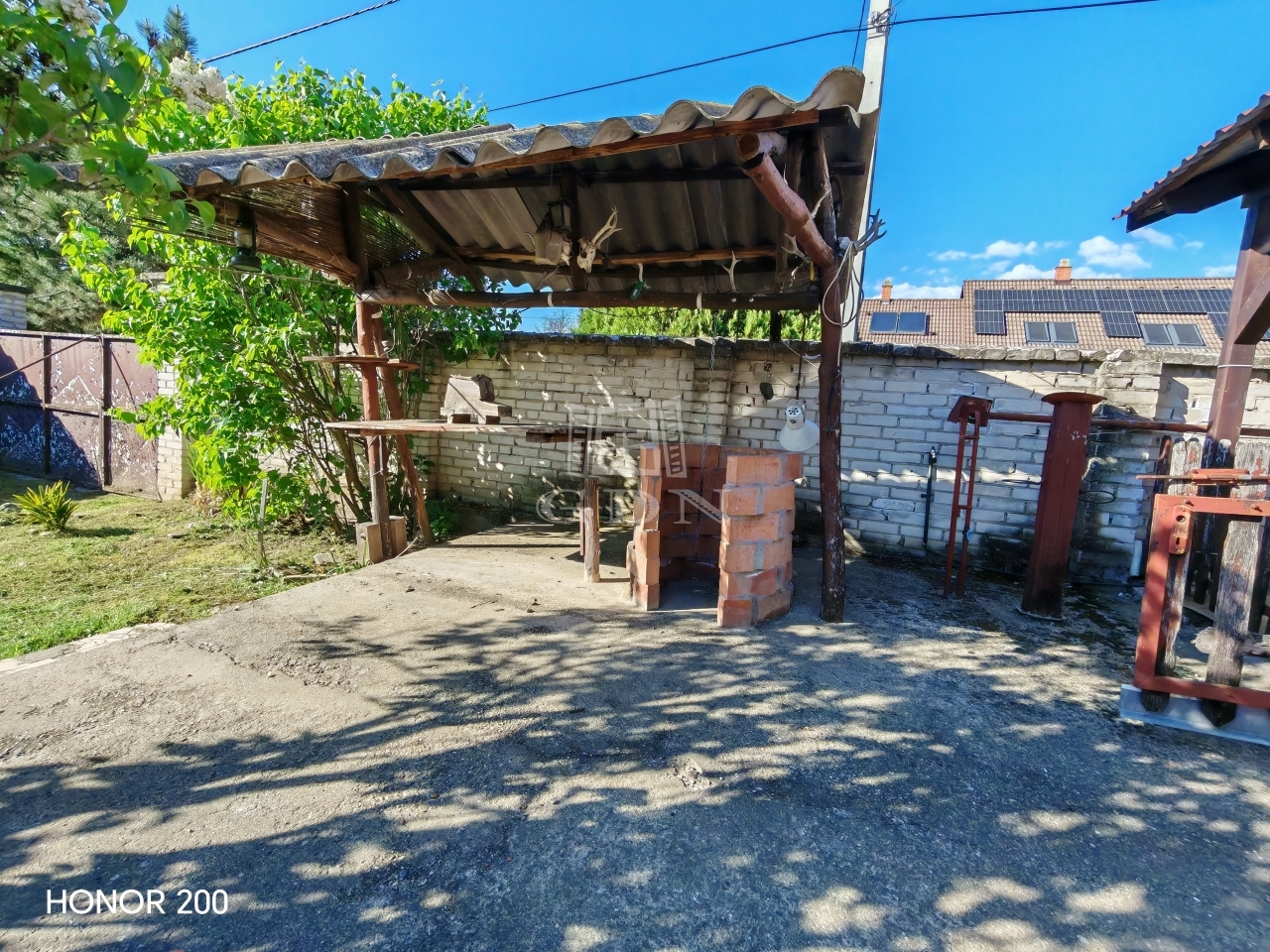 A házhoz tartozik egy 8 m²-es terasz és egy 4 m²-es erkély, amelyek kellemes kikapcsolódási lehetőséget nyújtanak. A telken egy garázs is helyet kapott.