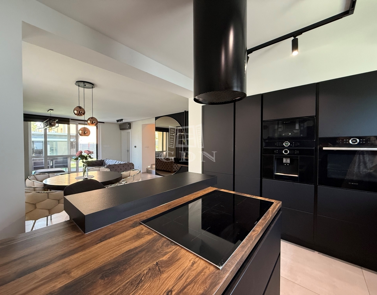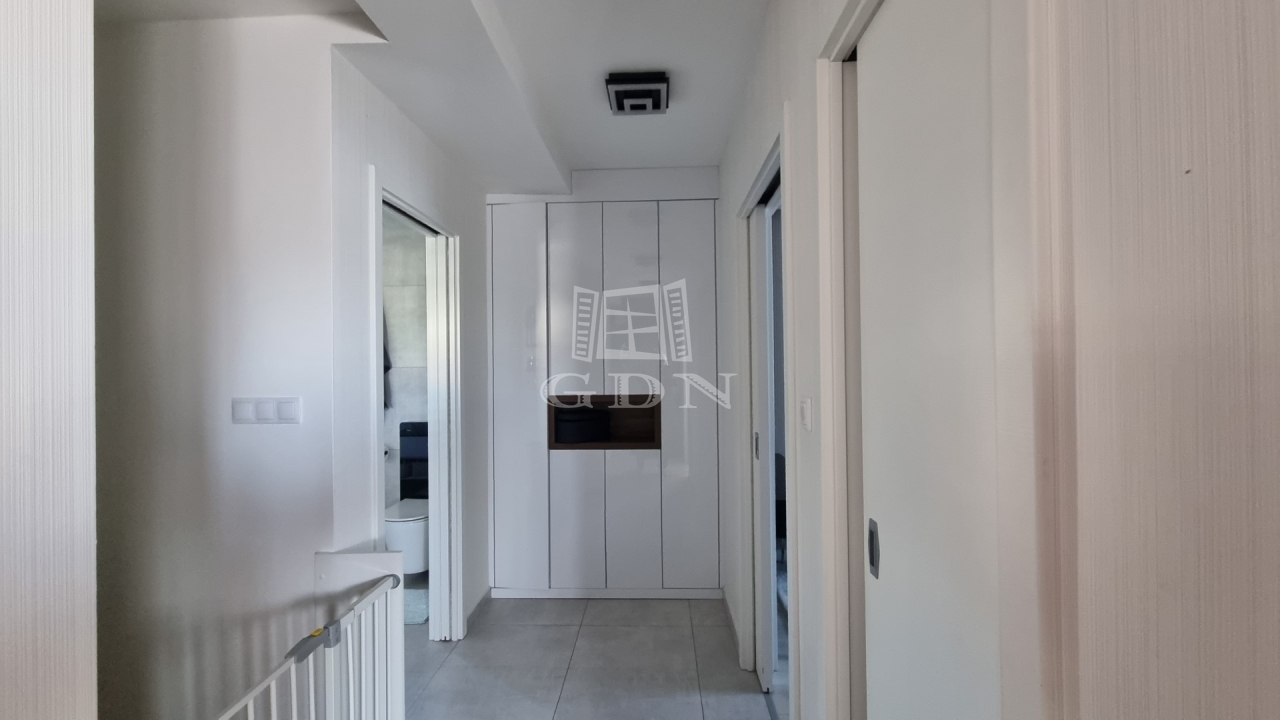 H-004303. Ráchegy, frekventált, kedvelt részén, összközműves építési telken, lakóparki környezetben, eladó egy 2022-ben épült kétszintes, igényes, egyedi kivitelezésű 150m2 hasznos alapterületű, nappali + 4 szobás+ jakuzzi, szaunaház/ konditeremmel ellátott önálló telekterülettel rendelkező családi ház, garázzsal, terasszal.